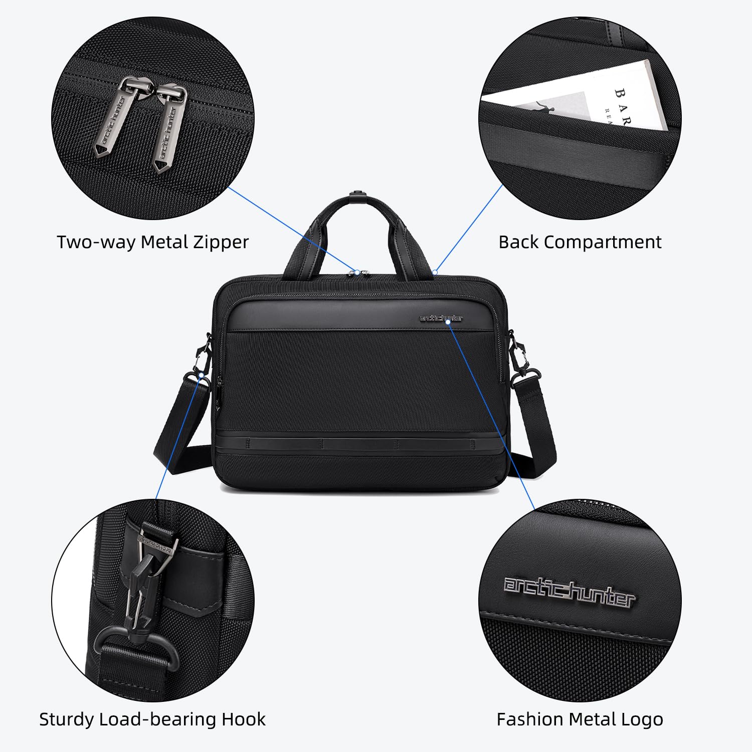 Arctic Hunter Laptop Bag for Men Women 2 in 1 Office Sling Hand Bag with 15.6″ Laptop Pocket Multiple Compartments Detachable Shoulder Strap Shockproof Water-resistant Briefcase
