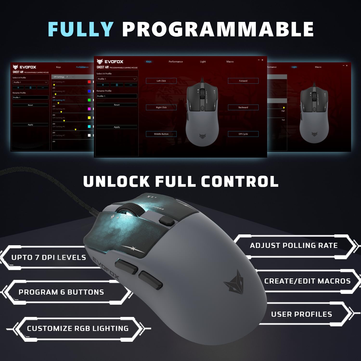 Enhance your gaming experience with the EvoFox Ghost Air’s 6 fully programmable buttons. Assign custom actions, shortcuts, or macros to each button for unmatched efficiency. Whether it’s quick in-game moves or boosting productivity, every click is tailored to deliver optimal performance.