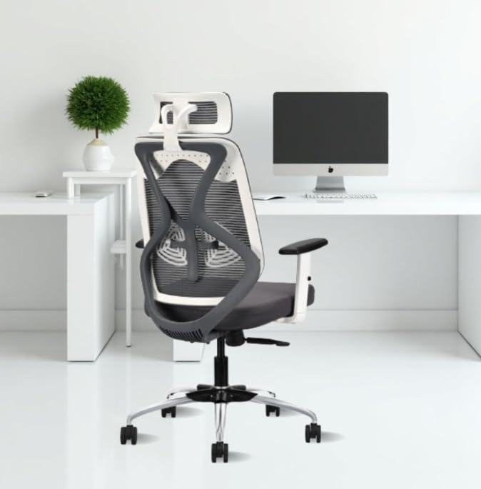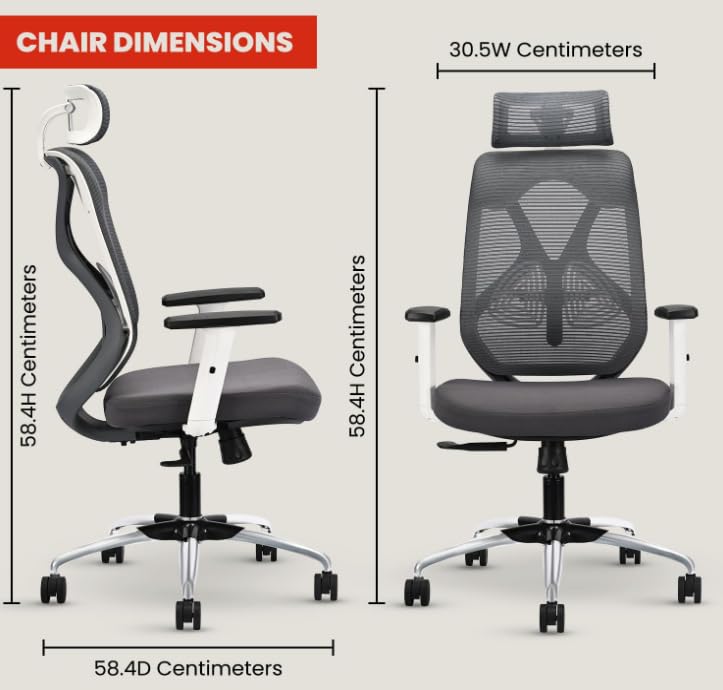SPECIFICATIONS – Seat frame material – Nylon | Internal Seat Material: Wood |Cushioned Seat Thickness : 3.9 INCHES| Filled with – PU | Swivel: 360º swivel | Seat Cover: Mesh | Color: Grey | Size: High Back | Tilt Lock | Gas-lift: Class 4 | Base: Heavy Duty Metal Base | Castors: Nylon Dual Wheels | Maximum Weight Capacity: Up to 120 Kgs | Height Adjustment :45″-48″ INCHES | Seat Width : 19″ INCHES| Seat Depth : 19 INCHES| Seat Height : 17.5 – 20.5″ INCHES| Back Height : 28″ INCHES|