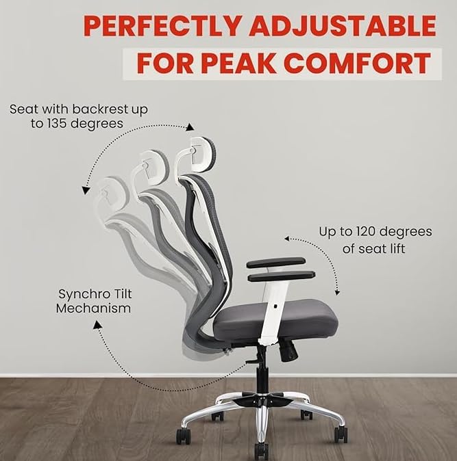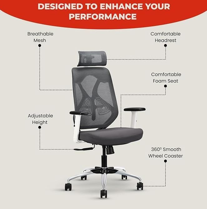 HIGH BACK SUPPORT- The ergonomic design with back support provides maximum ease for long sitting sessions.