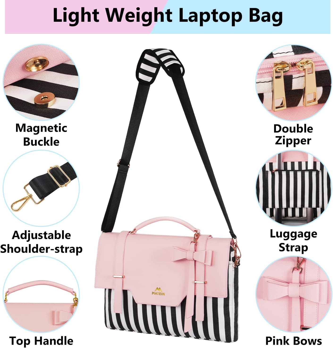 Multi-occasions Use: Multiple pockets keep travel business essentials well organized. Pink laptop tote bag for women is suitable for school, business trip, work, college, travel and office.Unusual office gifts for women, girlfriend, ladies, sisters. Perfect girly gifts for women who want to stand out from the crowd with its super-cute striped design as a office work bag, laptop messenger bag, slim school shoulder bag or travel laptop commuter bag